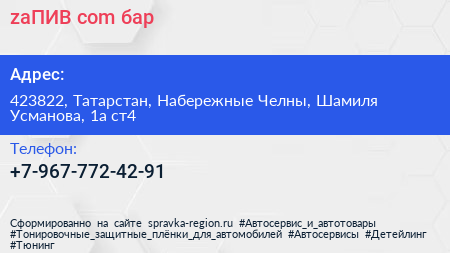 zaПИВ.com, бар по адресу 423822, Татарстан, Набережные Челны, Шамиля Усманова, 1а ст4 в дальнейшем Организация, размещена в следующих категориях: