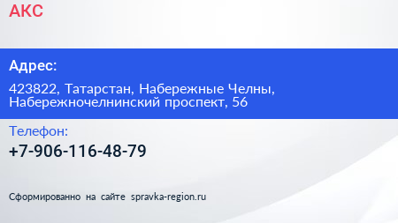 АКС по адресу 423822, Татарстан, Набережные Челны, Набережночелнинский проспект, 56 в дальнейшем Организация, размещена в следующих категориях: