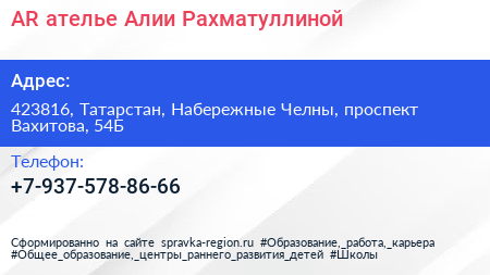 AR, ателье Алии Рахматуллиной по адресу 423816, Татарстан, Набережные Челны, проспект Вахитова, 54Б в дальнейшем Организация, размещена в следующих категориях: