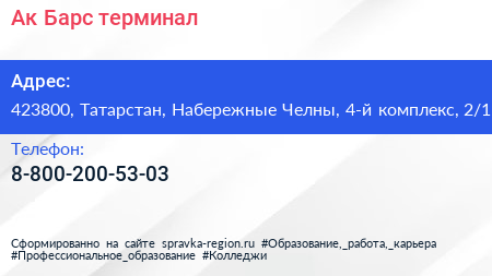 Ак Барс, терминал по адресу 423800, Татарстан, Набережные Челны, 4-й комплекс, 2/1 в дальнейшем Организация, размещена в следующих категориях: