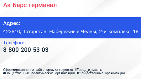 Ак Барс, терминал по адресу 423810, Татарстан, Набережные Челны, 2-й комплекс, 18 в дальнейшем Организация, размещена в следующих категориях: