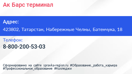Ак Барс, терминал по адресу 423802, Татарстан, Набережные Челны, Батенчука, 18 в дальнейшем Организация, размещена в следующих категориях:
