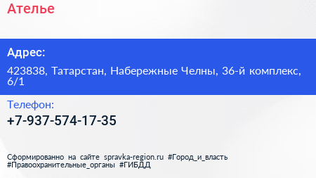 Ателье по адресу 423838, Татарстан, Набережные Челны, 36-й комплекс, 6/1 в дальнейшем Организация, размещена в следующих категориях:
