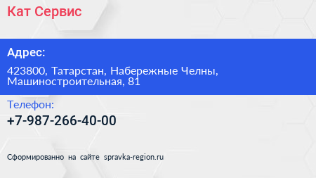 Кат Сервис по адресу 423800, Татарстан, Набережные Челны, Машиностроительная, 81 в дальнейшем Организация, размещена в следующих категориях: