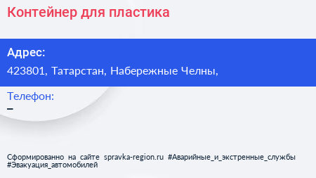 Контейнер для пластика по адресу 423801, Татарстан, Набережные Челны, в дальнейшем Организация, размещена в следующих категориях: