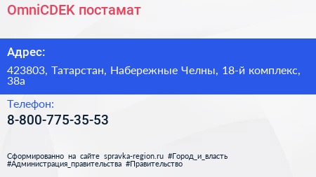 OmniCDEK, постамат по адресу 423803, Татарстан, Набережные Челны, 18-й комплекс, 38а в дальнейшем Организация, размещена в следующих категориях: