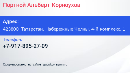 Портной Альберт Корноухов по адресу 423800, Татарстан, Набережные Челны, 4-й комплекс, 1 в дальнейшем Организация, размещена в следующих категориях: