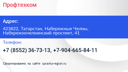 Профтехком по адресу 423822, Татарстан, Набережные Челны, Набережночелнинский проспект, 41 в дальнейшем Организация, размещена в следующих категориях:
