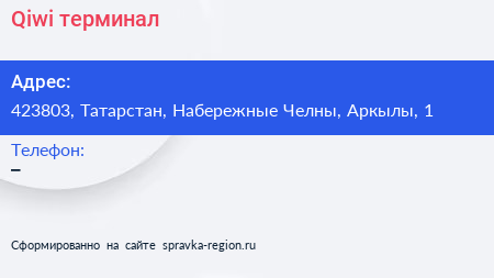 Qiwi, терминал по адресу 423803, Татарстан, Набережные Челны, Аркылы, 1 в дальнейшем Организация, размещена в следующих категориях:
