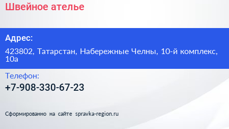 Швейное ателье по адресу 423802, Татарстан, Набережные Челны, 10-й комплекс, 10а в дальнейшем Организация, размещена в следующих категориях: