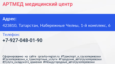 АРТМЕД, медицинский центр по адресу 423810, Татарстан, Набережные Челны, 1-й комплекс, 6 в дальнейшем Организация, размещена в следующих категориях: