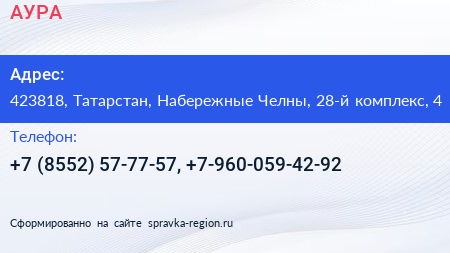 АУРА по адресу 423818, Татарстан, Набережные Челны, 28-й комплекс, 4 в дальнейшем Организация, размещена в следующих категориях: