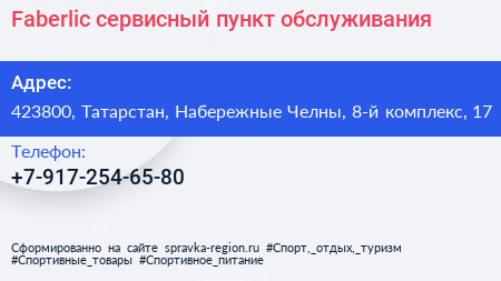 Faberlic, сервисный пункт обслуживания по адресу 423800, Татарстан, Набережные Челны, 8-й комплекс, 17 в дальнейшем Организация, размещена в следующих категориях: