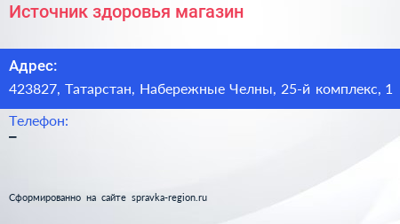 Источник здоровья, магазин по адресу 423827, Татарстан, Набережные Челны, 25-й комплекс, 1 в дальнейшем Организация, размещена в следующих категориях: