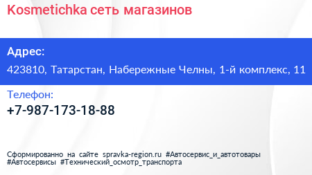 Kosmetichka, сеть магазинов по адресу 423810, Татарстан, Набережные Челны, 1-й комплекс, 11 в дальнейшем Организация, размещена в следующих категориях: