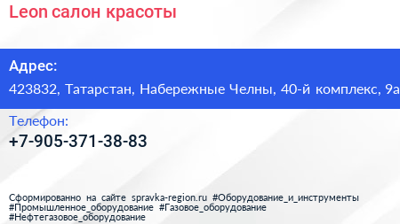 Leon, салон красоты по адресу 423832, Татарстан, Набережные Челны, 40-й комплекс, 9а в дальнейшем Организация, размещена в следующих категориях: