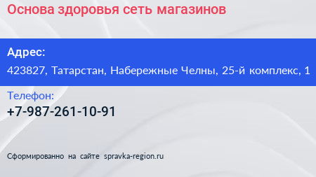 Основа здоровья, сеть магазинов по адресу 423827, Татарстан, Набережные Челны, 25-й комплекс, 1 в дальнейшем Организация, размещена в следующих категориях: