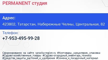 PERMANENT, студия по адресу 423802, Татарстан, Набережные Челны, Центральная, 82 в дальнейшем Организация, размещена в следующих категориях: