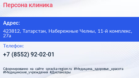 Персона, клиника по адресу 423812, Татарстан, Набережные Челны, 11-й комплекс, 27а в дальнейшем Организация, размещена в следующих категориях: