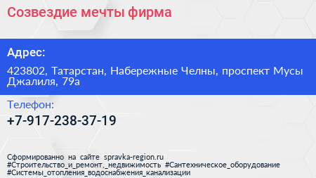 Созвездие мечты, фирма по адресу 423802, Татарстан, Набережные Челны, проспект Мусы Джалиля, 79а в дальнейшем Организация, размещена в следующих категориях: