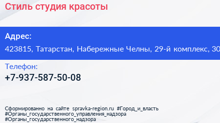Стиль, студия красоты по адресу 423815, Татарстан, Набережные Челны, 29-й комплекс, 30 в дальнейшем Организация, размещена в следующих категориях: