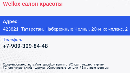 Wellox, салон красоты по адресу 423821, Татарстан, Набережные Челны, 20-й комплекс, 2 в дальнейшем Организация, размещена в следующих категориях: