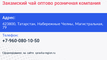 Закамский чай, оптово-розничная компания по адресу 423800, Татарстан, Набережные Челны, Магистральная, 79 в дальнейшем Организация, размещена в следующих категориях: