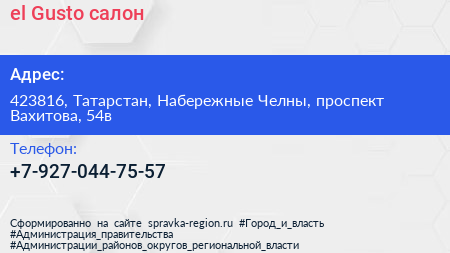 el Gusto, салон по адресу 423816, Татарстан, Набережные Челны, проспект Вахитова, 54в в дальнейшем Организация, размещена в следующих категориях: