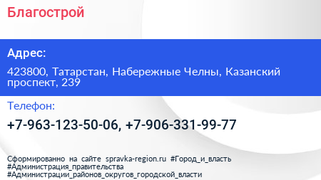 Благострой по адресу 423800, Татарстан, Набережные Челны, Казанский проспект, 239 в дальнейшем Организация, размещена в следующих категориях: