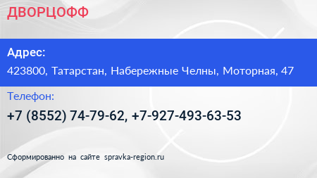 ДВОРЦОФФ по адресу 423800, Татарстан, Набережные Челны, Моторная, 47 в дальнейшем Организация, размещена в следующих категориях: