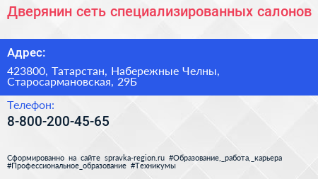 Дверянин, сеть специализированных салонов по адресу 423800, Татарстан, Набережные Челны, Старосармановская, 29Б в дальнейшем Организация, размещена в следующих категориях: