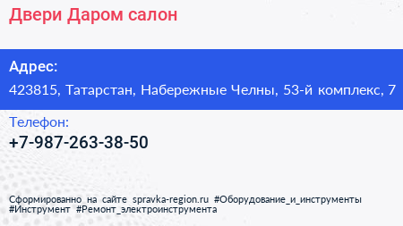 Двери-Даром, салон по адресу 423815, Татарстан, Набережные Челны, 53-й комплекс, 7 в дальнейшем Организация, размещена в следующих категориях: