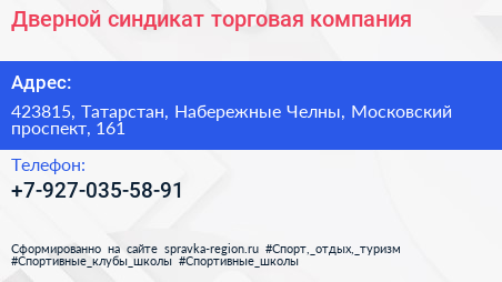 Дверной синдикат, торговая компания по адресу 423815, Татарстан, Набережные Челны, Московский проспект, 161 в дальнейшем Организация, размещена в следующих категориях: