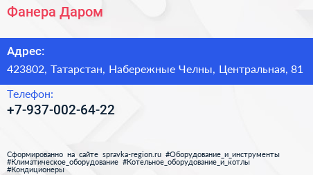 Фанера Даром по адресу 423802, Татарстан, Набережные Челны, Центральная, 81 в дальнейшем Организация, размещена в следующих категориях: