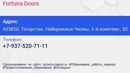 Fortuna Doors по адресу 423810, Татарстан, Набережные Челны, 1-й комплекс, 10 в дальнейшем Организация, размещена в следующих категориях: