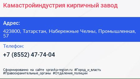 Камастройиндустрия, кирпичный завод по адресу 423800, Татарстан, Набережные Челны, Промышленная, 57 в дальнейшем Организация, размещена в следующих категориях: