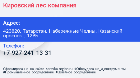 Кировский лес, компания по адресу 423820, Татарстан, Набережные Челны, Казанский проспект, 129Б в дальнейшем Организация, размещена в следующих категориях: