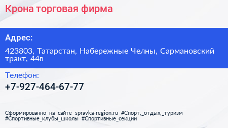 Крона, торговая фирма по адресу 423803, Татарстан, Набережные Челны, Сармановский тракт, 44в в дальнейшем Организация, размещена в следующих категориях:
