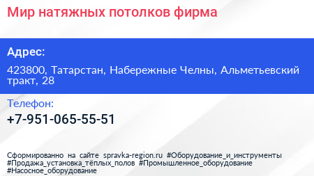 Мир натяжных потолков, фирма по адресу 423800, Татарстан, Набережные Челны, Альметьевский тракт, 28 в дальнейшем Организация, размещена в следующих категориях: