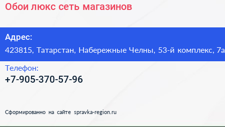Обои люкс, сеть магазинов по адресу 423815, Татарстан, Набережные Челны, 53-й комплекс, 7а в дальнейшем Организация, размещена в следующих категориях: