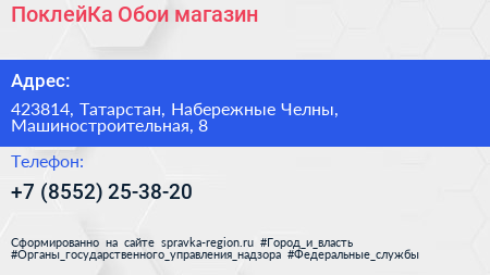 ПоклейКа Обои, магазин по адресу 423814, Татарстан, Набережные Челны, Машиностроительная, 8 в дальнейшем Организация, размещена в следующих категориях: