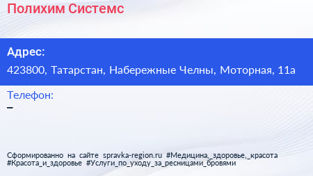 Полихим Системс по адресу 423800, Татарстан, Набережные Челны, Моторная, 11а в дальнейшем Организация, размещена в следующих категориях: