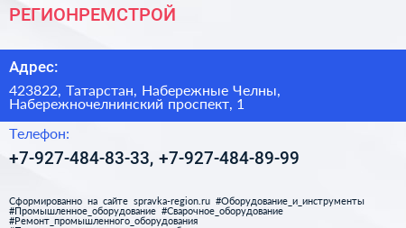 РЕГИОНРЕМСТРОЙ по адресу 423822, Татарстан, Набережные Челны, Набережночелнинский проспект, 1 в дальнейшем Организация, размещена в следующих категориях: