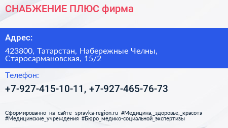 СНАБЖЕНИЕ ПЛЮС, фирма по адресу 423800, Татарстан, Набережные Челны, Старосармановская, 15/2 в дальнейшем Организация, размещена в следующих категориях: