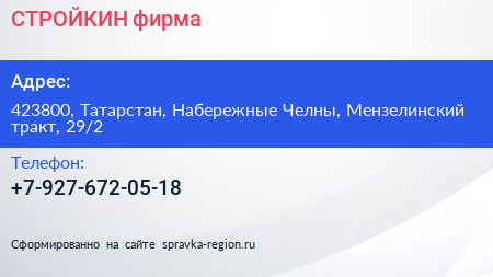 СТРОЙКИН, фирма по адресу 423800, Татарстан, Набережные Челны, Мензелинский тракт, 29/2 в дальнейшем Организация, размещена в следующих категориях: