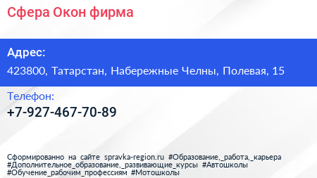 Сфера Окон, фирма по адресу 423800, Татарстан, Набережные Челны, Полевая, 15 в дальнейшем Организация, размещена в следующих категориях: