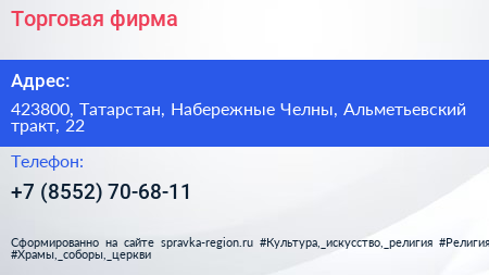 Торговая фирма по адресу 423800, Татарстан, Набережные Челны, Альметьевский тракт, 22 в дальнейшем Организация, размещена в следующих категориях: