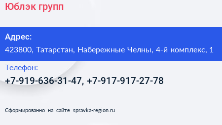 Юблэк-групп по адресу 423800, Татарстан, Набережные Челны, 4-й комплекс, 1 в дальнейшем Организация, размещена в следующих категориях: