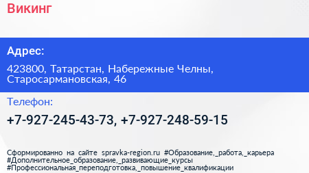 Викинг по адресу 423800, Татарстан, Набережные Челны, Старосармановская, 46 в дальнейшем Организация, размещена в следующих категориях: