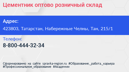 Цементник, оптово-розничный склад по адресу 423803, Татарстан, Набережные Челны, Тан, 215/1 в дальнейшем Организация, размещена в следующих категориях: